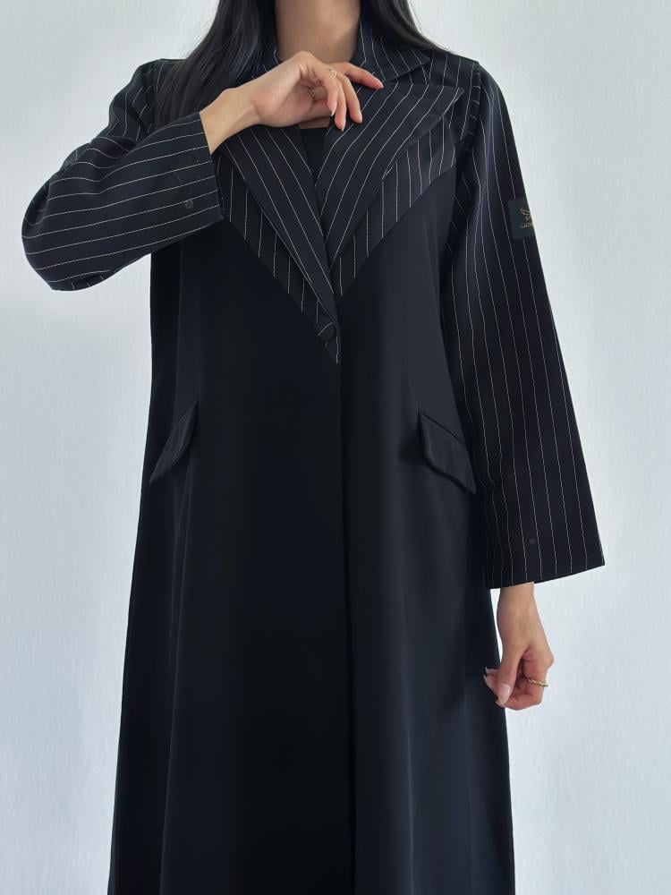 عباية أنيقة بمزيج مثالي من الأناقة والراحة مناسبة لجميع الاوقات الرسمية والطلعات بقماش كريب سيراميك وهو من اجود انواع الاقمشة الصيفبة مع ياقة واكمام من قماش مقلم ( باللون الأبيض والأسود ) مميزة و يزيد من جمال تصميم العباية ويجعلها اختيارك الأول للعديد من المناسبات المختلفة، العباية مصنوعة من قماش كريب سيراميك بسواد فاحم ،فمن المؤكد أن هذه العباية هي اختيارك المثالي، بادري بالحصول عليها من متجرنا بأفضل الأسعار لتكون إضافة مثالية لتشكيلة عباياتك ذات الذوق الرفيع.